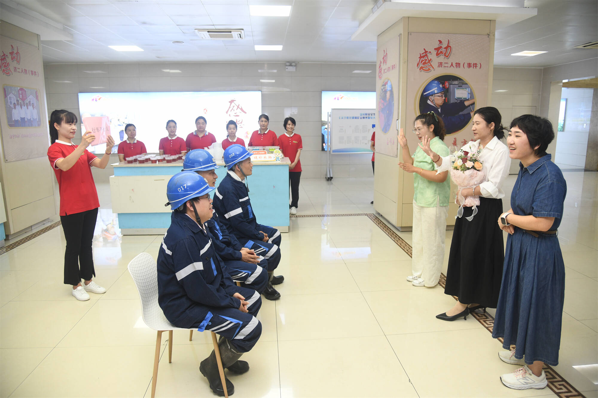 最热闹的当属互动环节。“心有灵犀”游戏里,家属们比划得手舞足蹈:“三个字,下井必须戴的!”“安全帽!”丈夫们秒答,默契得像演练过。轮到猜“停电闭锁”,孟师傅妻子先做了个“拉闸”的动作,又比了个“锁”的手势,逗得大家直乐:“这哪是猜词,是夫妻间的‘安全暗号’吧!”