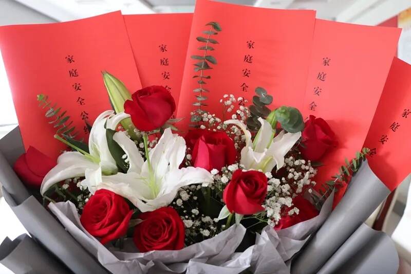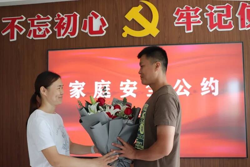 为营造温馨氛围,鼓励职工家庭勇敢表达深藏心底的爱意,女工委特意准备了象征炽热爱意的红玫瑰与代表“百年好合”的百合花束。鲜花传递之间,平日里不善言辞的丈夫们眼神柔软,妻子们笑中带泪,一句句“辛苦了”“注意安全”“我等你回家”的真情流露,让现场充满了感动与温暖。安全不再是标语口号,而是亲人之间最牵挂的叮咛。