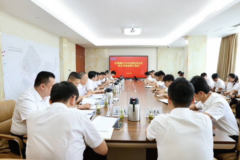 8月27日,东滩煤矿在技术会议室举行2024年高校毕业生转正考核汇报会。