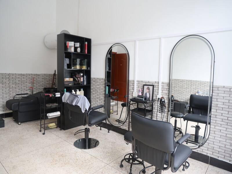走进“职工理发室”,约三十平米的房间里,两张黑色理发椅崭新发亮,墙上嵌着的镜面擦得一尘不染,沙发躺椅柔软舒适,洗剪吹“一站式”服务设施一应俱全。