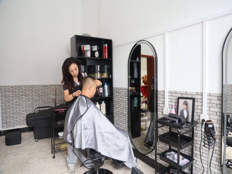 理发师麻利地给刚坐下的机电工区王师傅围上围布,说话带着亲切的乡音,“师傅,理个什么发型?”。刚洗完头的王师傅坐在椅子上笑着说道:“剪短点吧,我习惯留短发。以前想要理发,得花三十分钟去县城,还得排队等待,来回折腾足足两小时。现在剪了头发,马上就能回宿舍休息了,真方便!”