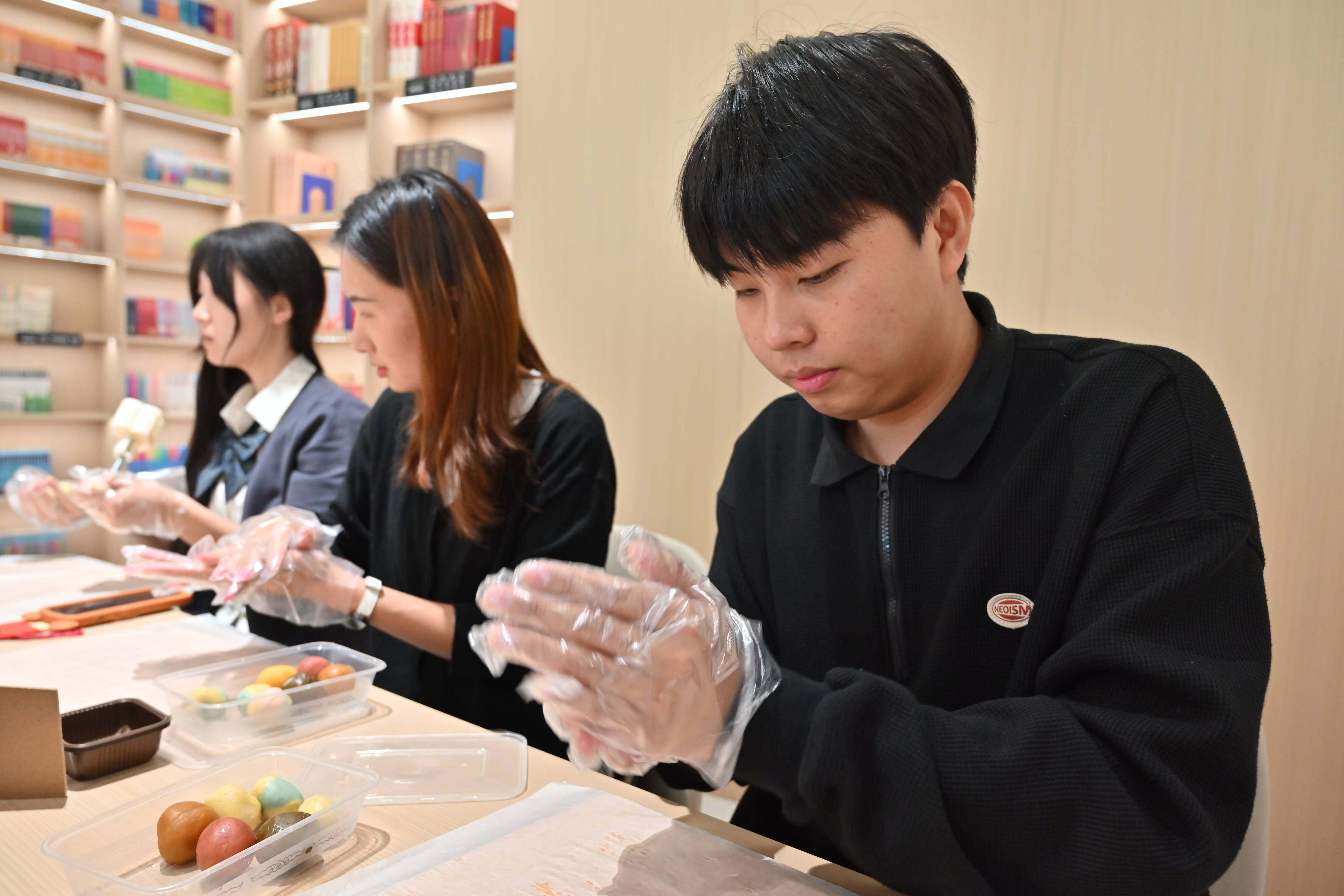 “团圆味道,亲手创造”——在温馨有趣的月饼DIY环节,大家围坐一起,揉搓饼皮、包裹馅料、压模成型。欢声笑语中,一枚枚承载着心意与祝福的月饼逐渐成型。这不仅是对传统节日习俗的亲身体验,更是在协作中增进情谊、感受“家”一般温暖团圆氛围的美好时刻。