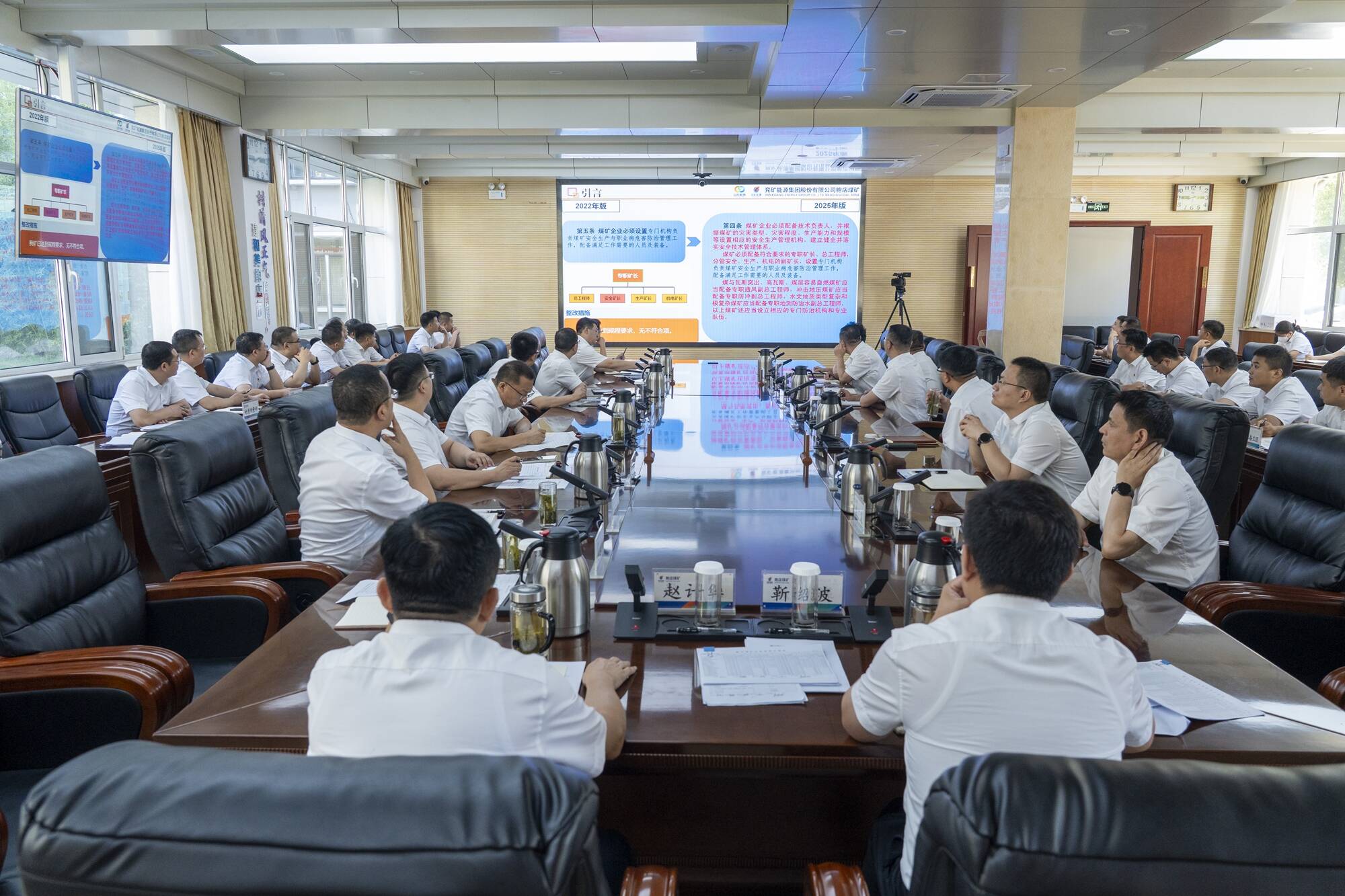 新版《规程》发布后,该矿第一时间召开专题部署会,制定《新版〈煤矿安全规程〉专项学习实施方案》。方案明确将学习任务分解至安全监察部、生产技术部、机电管理部等8家单位,确保“责任到人、任务到岗、学有实效”。组织各专业部室在安全生产周例会上轮番讲解新版、旧版《规程》不同之处,逐条解读新增、修改、删除条款,梳理出需整改项,列出清单、明确责任,确保问题不遗漏、整改不打折。