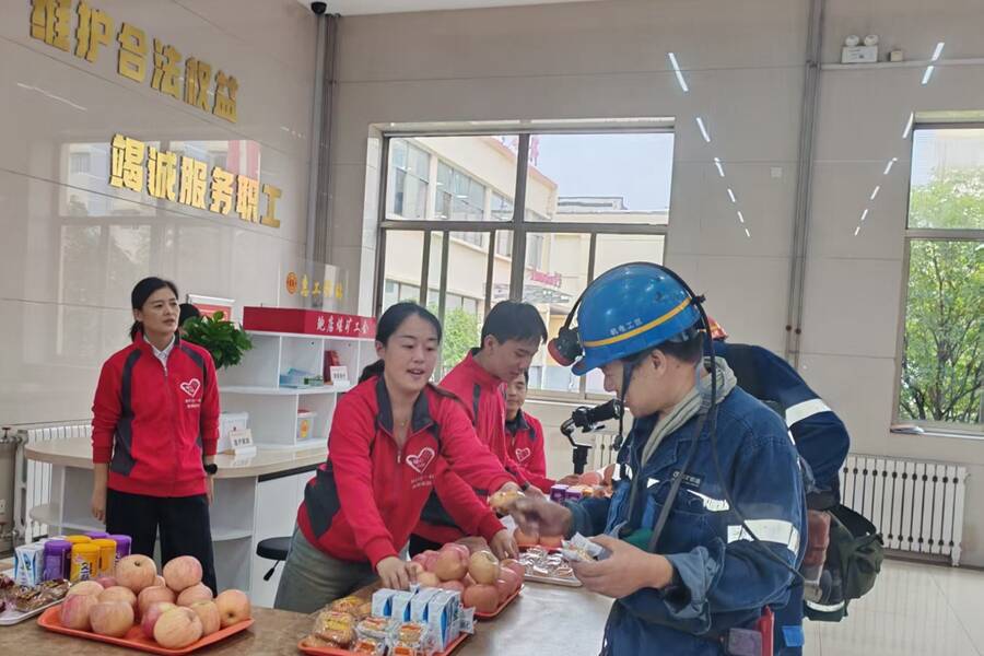 “师傅辛苦了!吃块月饼,祝您中秋快乐,下井一定要注意安全!”在井口候罐大厅新落成的“惠工驿站”里,这样的温馨对话此起彼伏。作为工会服务直达一线的“前沿阵地”,这个离矿井最近的空间,如今成了职工们往返井下的温馨歇脚处。