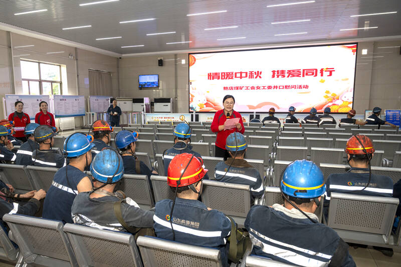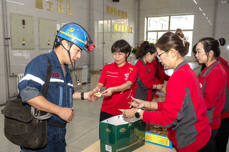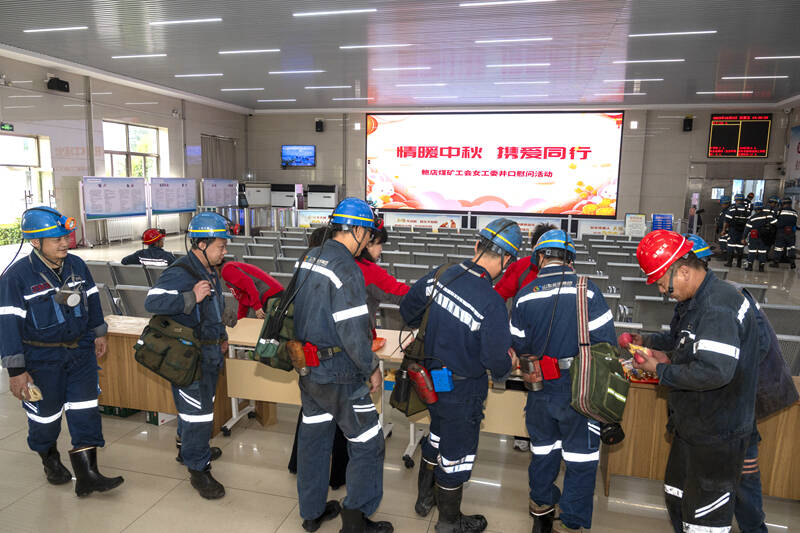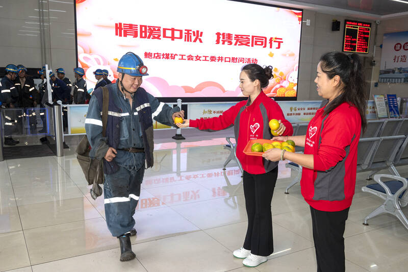 国庆节、中秋节期间,本是阖家团圆的时刻,但依然有许多职工坚守在岗位上,为矿井安全生产默默奉献。近日,鲍店煤矿工会女工委在井口候罐大厅精心举办“情暖中秋 携爱同行”井口慰问活动,为节日期间坚守岗位的上下井职工送上节日关怀与安全叮嘱。