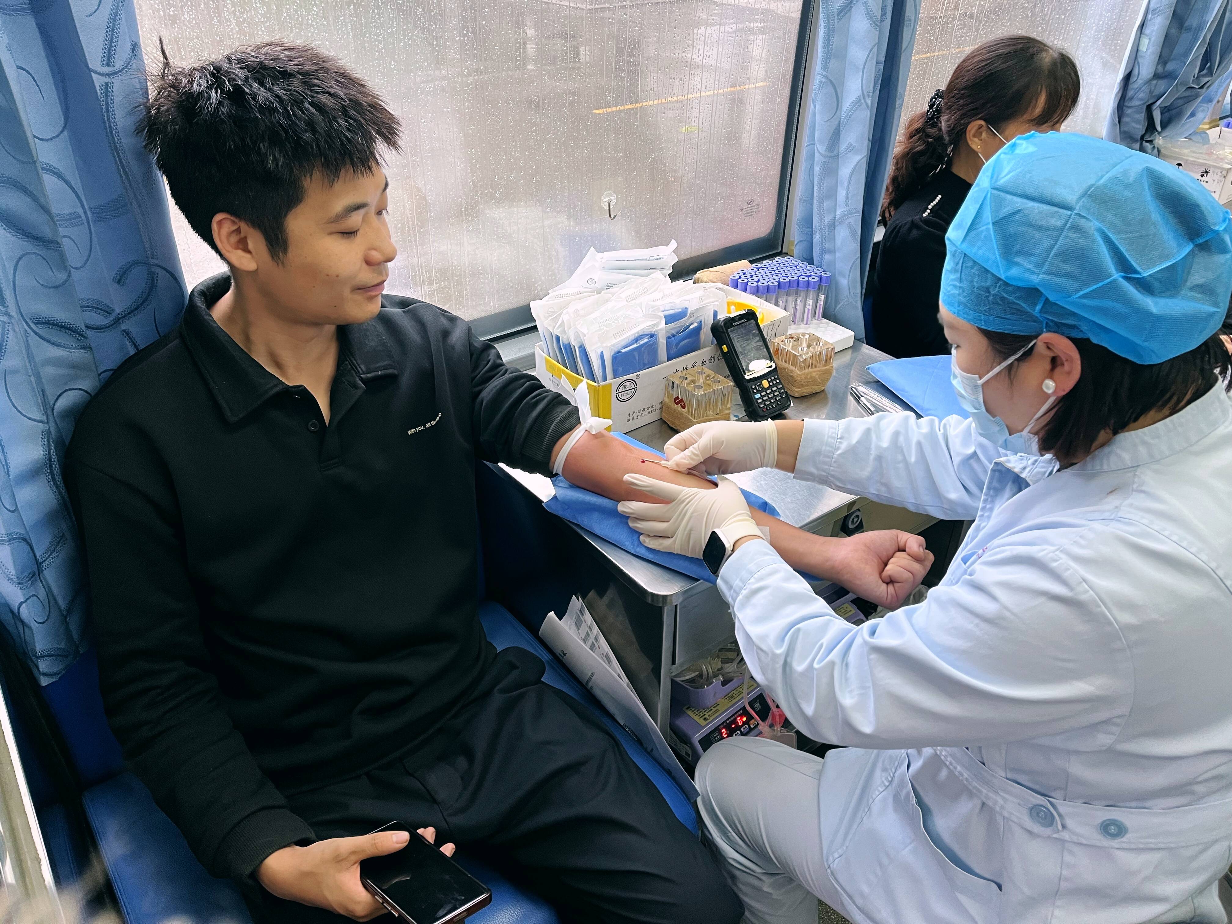 活动现场,印有“无偿献血,挽救生命”字样的献血车早早停靠在公司楼下,医护人员提前做好消毒、设备调试等准备工作,现场设置了登记区、体检区、采血区和休息区。在志愿者的引导下,青年们有序排队,在登记区,大家认真填写献血登记表,仔细核对个人信息;在体检区,医护人员耐心为大家测量血压、检测血型,详细询问健康状况,确保献血者身体条件符合要求。采血过程中,青年们纷纷主动挽起袖子,脸上没有丝毫怯意。“我每年都会参加献血,能为需要的人送去帮助,感觉特别有意义。”刚完成献血的青年职工唐宇鹏说道。献血结束后,医护人员为每位献血者发放无偿献血证书、送上营养礼包,并叮嘱注意事项。