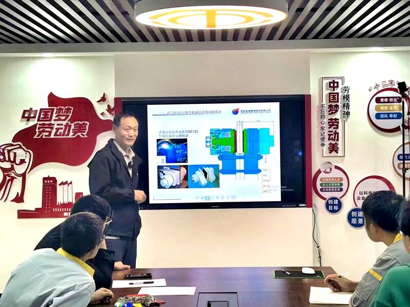 培训内容聚焦关键提升设备——多绳摩擦式提升机液压系统,张艳大师凭借其在该领域深厚的理论功底与丰富的实践经验,系统性地讲解了西马格提升机BE125制动单元的结构组成及原理、ST3-F型提升机液压系统结构组成及原理。他重点剖析了“提升机正常停车时的工作制动”与“提升机紧急停车时的恒减速制动”两种核心工况下的系统响应与控制逻辑,使学员们对提升机不同运行工况下运行机制有了更深入的理解。培训还结合现场实际,分享了提升机液压系统管理维护心得,针对日常操作与维护中的难点、要点进行了精准指导。