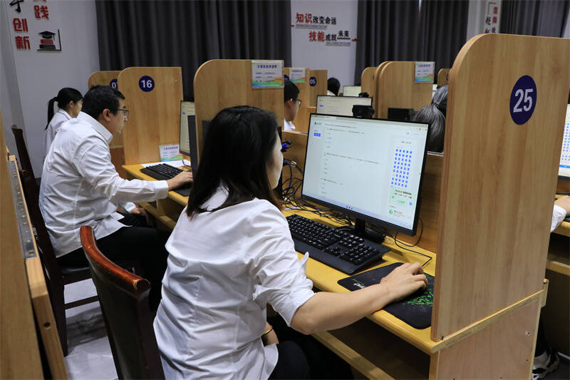 理论考试环节借助“山能e学”平台开展线上考核,选手通过电脑登录能源集团统一认证平台进行作答,考试成绩当场公布。