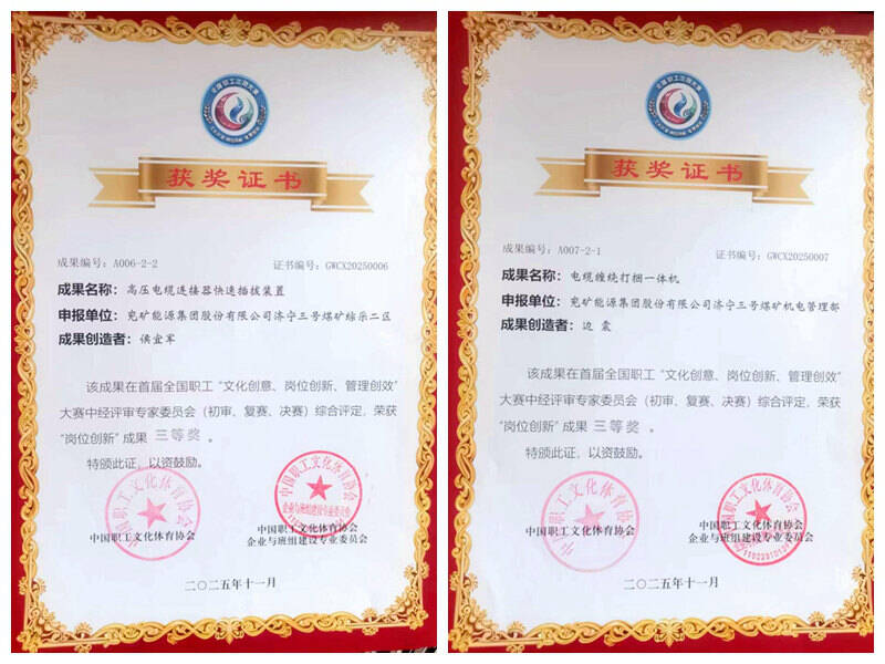 在首届全国职工“文化创意、岗位创新、管理创效”大赛决赛展厅内,两台看似不起眼却凝结着矿工智慧的设备正吸引着全国同行的目光。兖矿能源济三煤矿遴选的“电缆缠绕打捆一体机”与“高压电缆连接器快速插拔装置”,从数千项参赛作品中脱颖而出,双双入围首届全国职工“三创”大赛决赛,最终喜获全国岗位创新赛道三等奖。这对“矿山兄弟”创新成果的诞生,不仅让井下作业效率实现“三级跳”,更书写了一线职工“小创新解决大难题”的生动篇章。