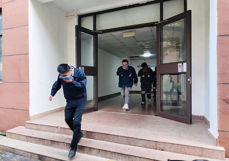 有序疏散,细节把控凸显实效。“大家请注意,2#宿舍楼发生火情,请立即用湿毛巾捂住口鼻,弯腰低姿,从东侧步梯有序撤离至楼下安全区域,切勿拥挤!”应急广播循环播放着疏散提示。宿舍楼内人员听到指令后,迅速拿出提前准备好的湿毛巾捂住口鼻,按照预定路线快速向楼梯口移动。大家严格遵循疏散要求,动作规范、步速快捷。15时36分,宿舍楼内所有人员全部撤离至安全区域,全程用时仅3分钟,圆满完成预定疏散目标。15时58分,“汇报总指挥,现场火情已经扑灭,无人员伤亡,汇报完毕!”