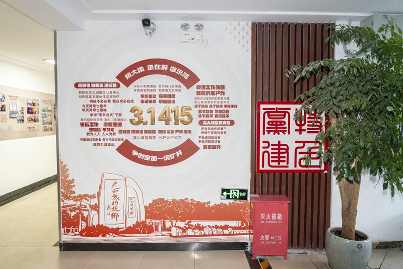 这一醒目的“开门”标语,让每一位步入其中的党员干部都能迅速进入学习状态,实现精神“充电”;也为整个党建文化长廊奠定了宏大的叙事基调,精准揭示了鲍店煤矿高质量发展的核心密码。