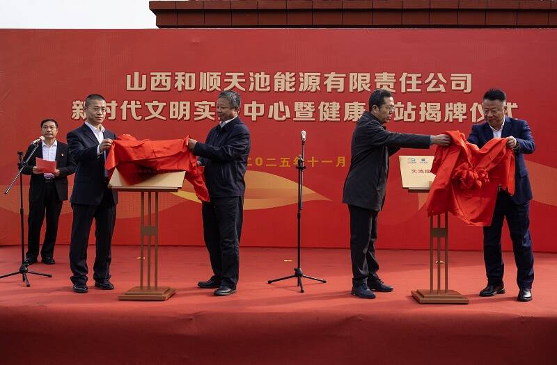 11月8日,天池能源隆重举行新时代文明实践中心暨健康驿站揭牌仪式。山西省煤炭工会主席王宝文,晋中市能源局党组书记、局长魏红州,和顺县委常委、副县长赵文涛,全国总工会组织部主任科员丁衡受邀出席仪式,并共同为“天池能源新时代文明实践中心”“天池能源健康驿站”揭牌,标志着天池能源在精神文明建设与职工关怀服务领域迈出关键一步。