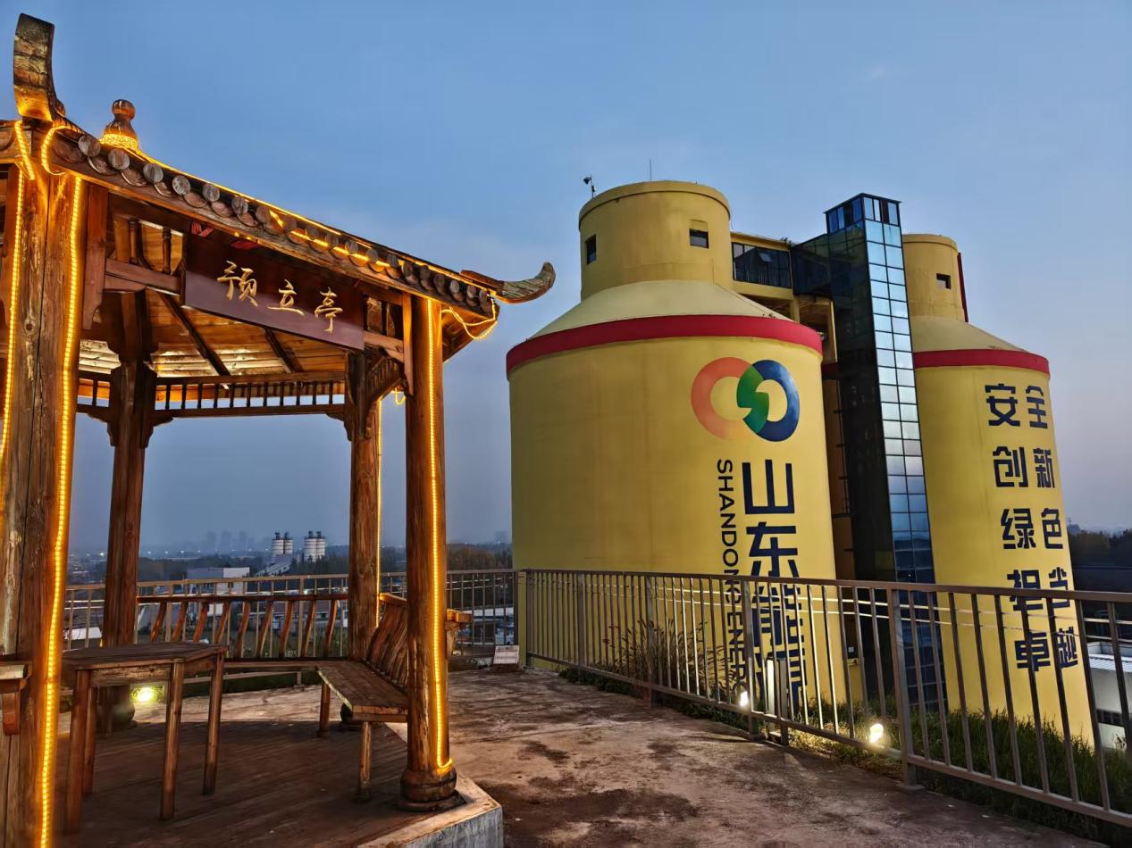夕阳为“山东能源”的塔身镀上梦幻渐变色,玻璃幕墙倒映着云霞。这一刻,硬核的工业设施也变得浪漫起来。