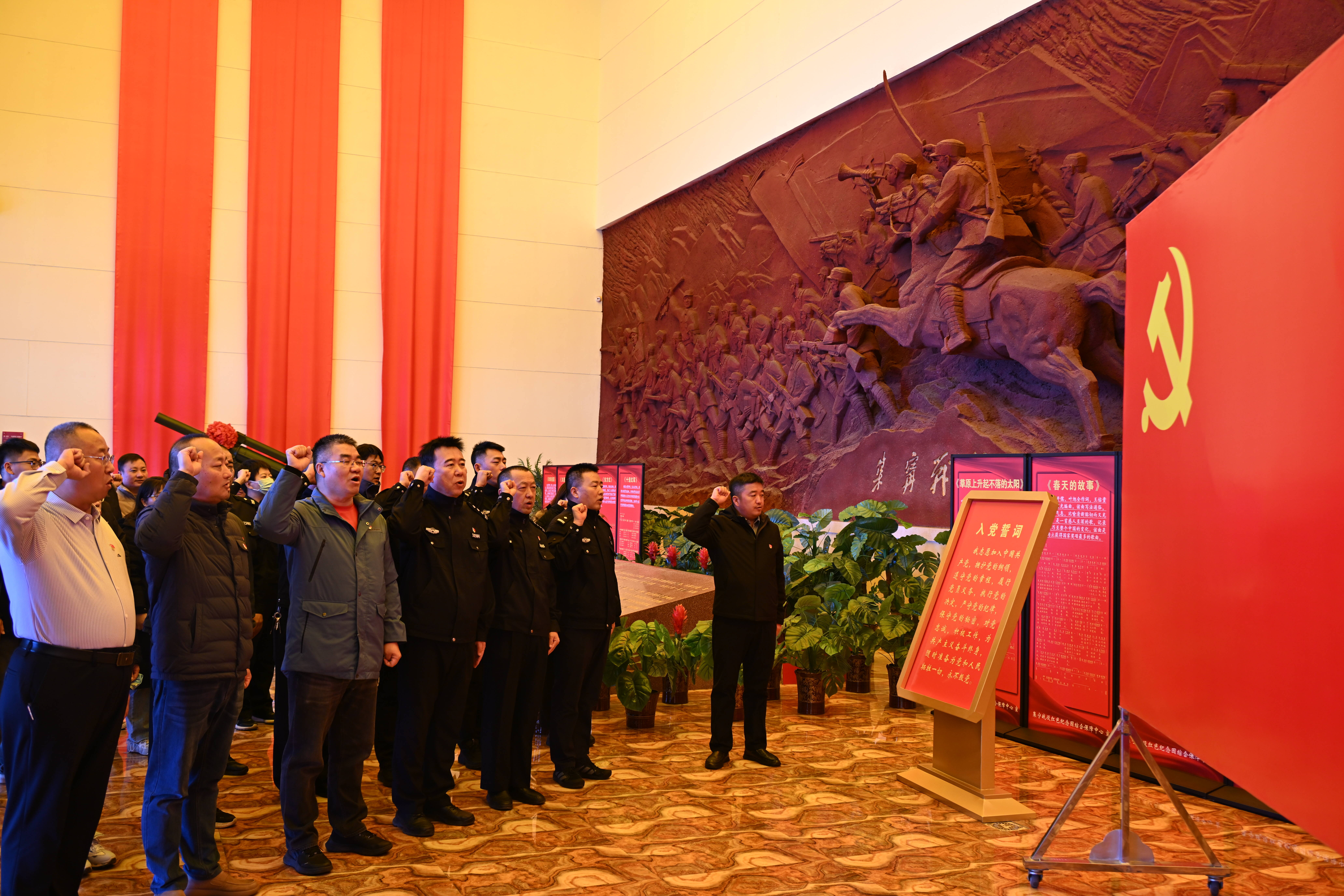 首站是集宁战役纪念馆,踏进纪念馆,时光仿佛回溯到烽火岁月。泛黄的作战地图、斑驳的革命文物、震撼人心的战斗影像,生动再现了革命先辈浴血奋战、守护家园的壮阔历程。参与者静静聆听讲解,深刻感悟战役的重大历史意义。随后,在曾被热血浸染的红色土地上,一场重温誓言的仪式庄重举行。鲜红党旗下,全体党员高举右拳,铿锵誓言响彻馆内,既是对革命先烈的深切告慰,更是对初心使命的坚定践行,让红色基因在心灵深处扎根。