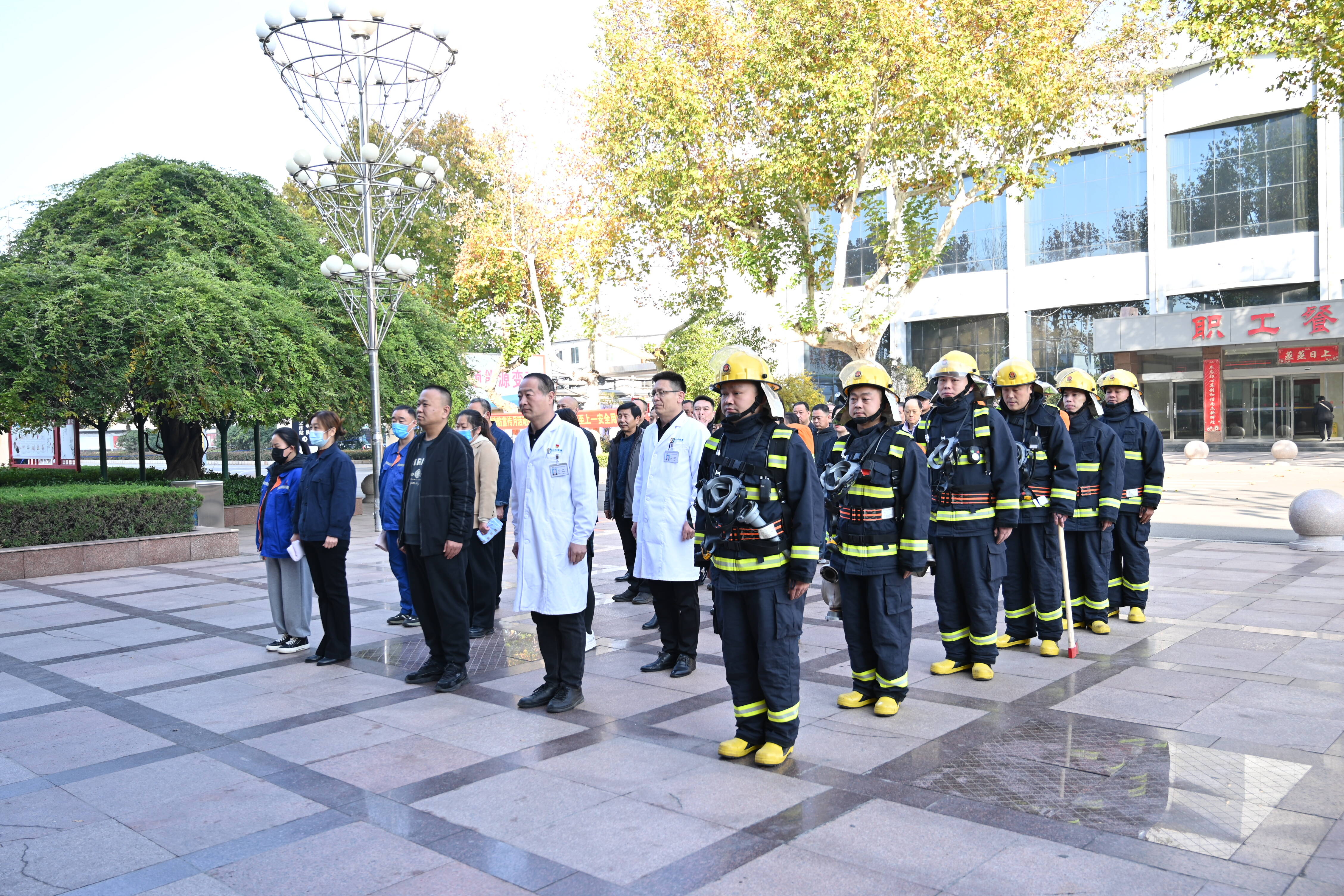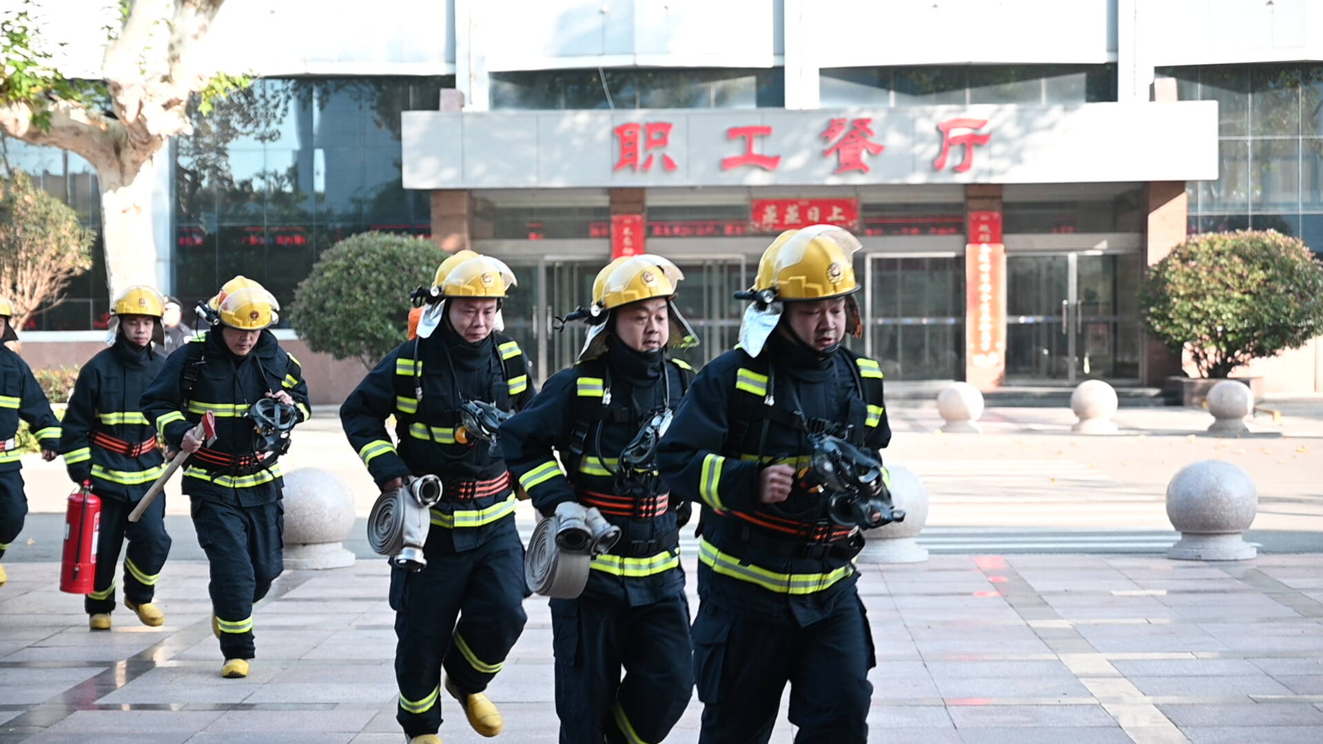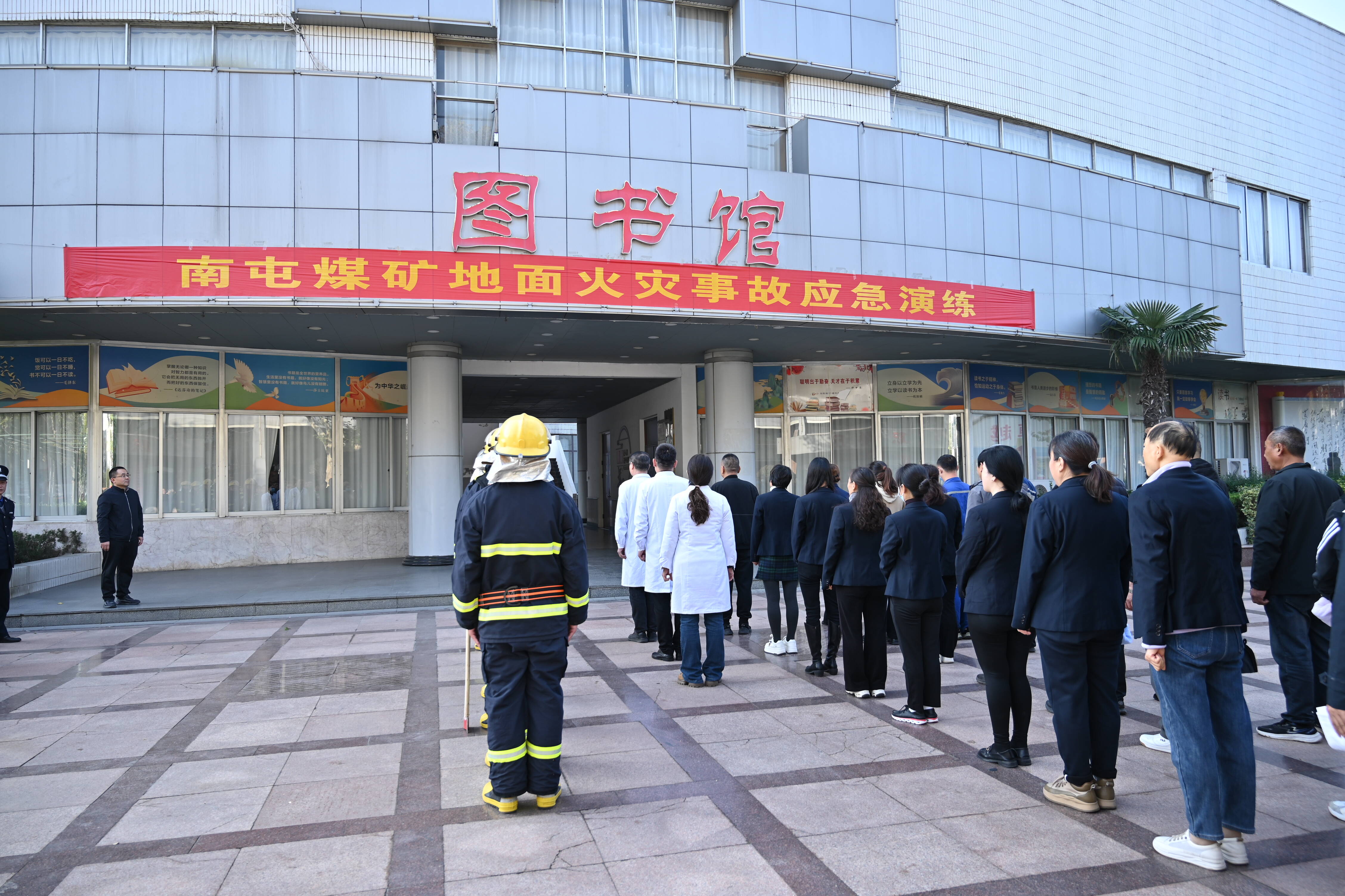 随着,演练总指挥一声令下,演练正式启动。演练模拟该矿综合服务中心后勤高层公寓在巡查中发现火情,巡检人员迅速报警并第一时间向该矿调度室汇报。随后,立即启动《矿井地面火灾事故专项应急预案》,成立应急救援指挥部,统一指挥、协调救援行动。该矿安保项目部、综合服务中心后勤车管、南屯煤矿医院等相关部门闻令而动,迅速集结力量,赶赴现场,按照应急预案展开行动。消防救援及医疗救护人员展开灭火、抢救被困人员及医疗救治工作。