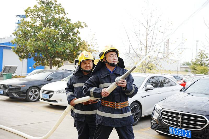 演练设置应急救援与处置疏散两大核心项目,模拟场景中,6号楼二层西侧走廊突发火情且迅速蔓延,1名职工被困,情况十分紧急。值班人员发现险情后第一时间上报调度信息中心,总指挥张雪涛即刻下达指令,启动应急救援预案。