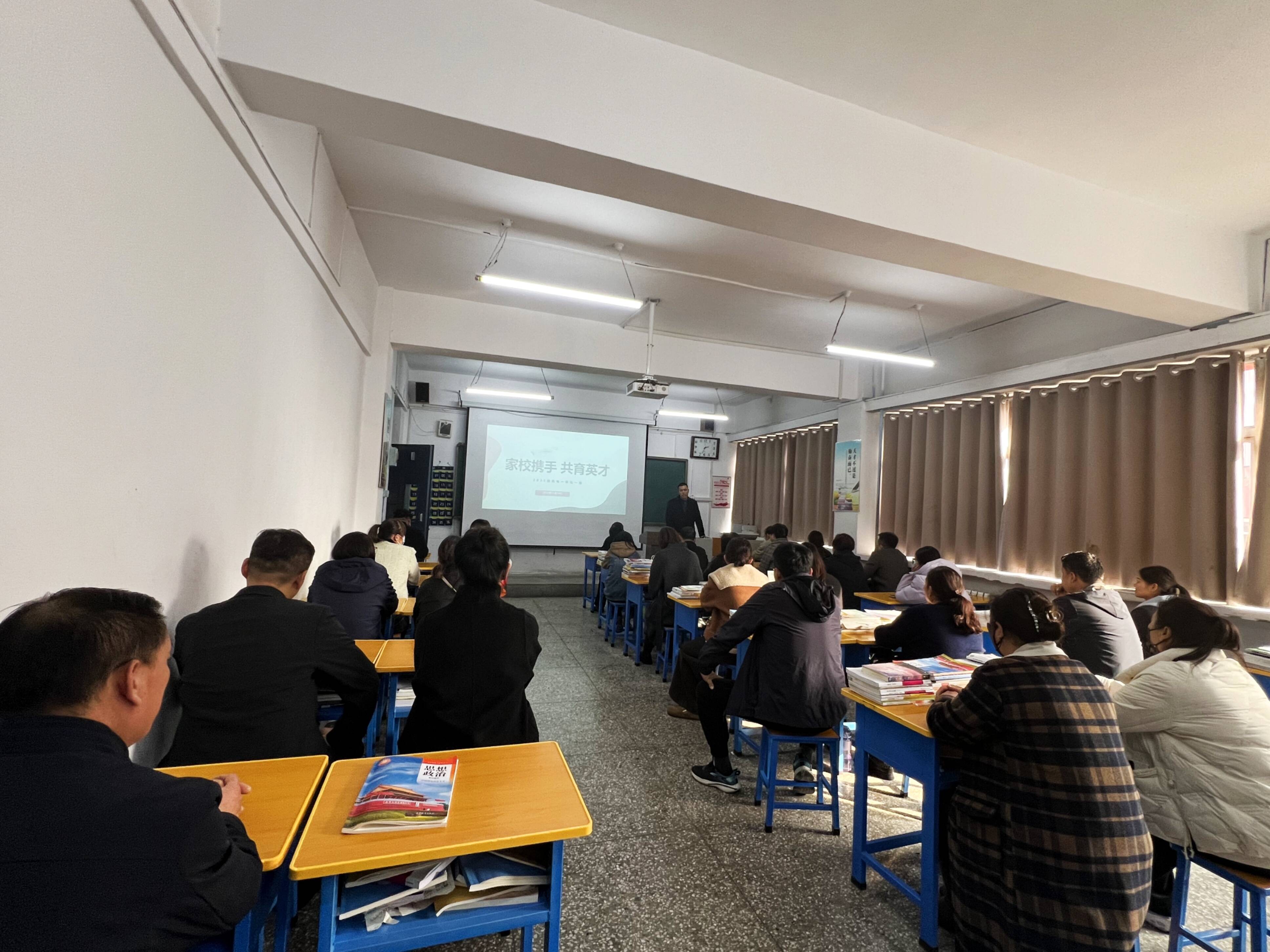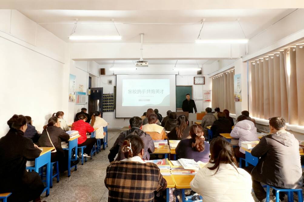 午后的校园洋溢着融融暖意,家长们怀揣着对孩子成长的深切关怀,准时踏入教室。教室内,整洁的课桌上井然有序地摆放着学生的课本与作业,投影幕布上“家校携手 共育英才”的主题字样分外醒目。随着班主任的开场致辞,家长会正式拉开序幕。