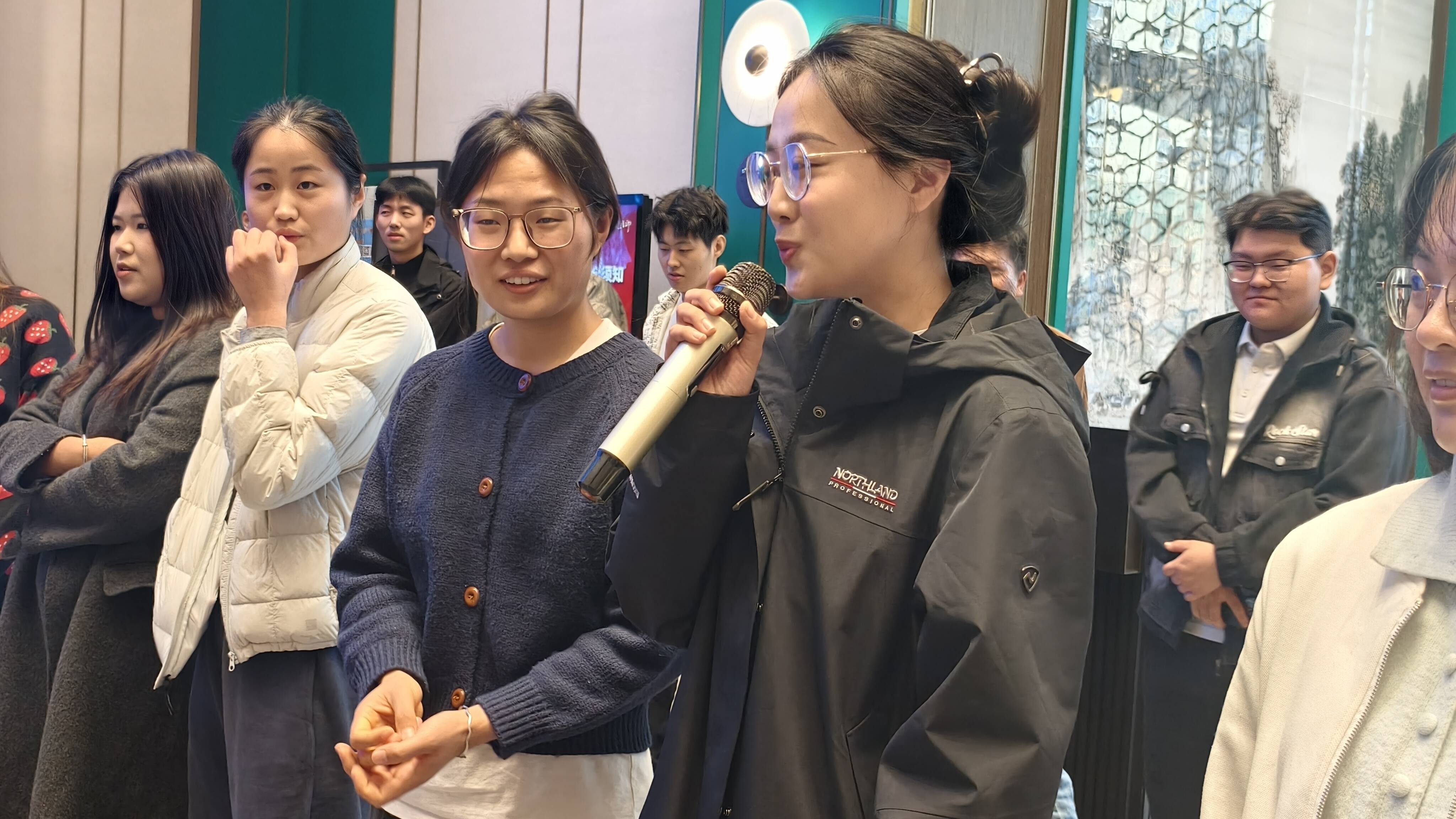 活动现场兼具传统国风韵味与现代青春活力:背景墙上的凤凰彩绘生动鲜活,既呼应 “凤梧印” 场地的文化内涵,更承载 “筑巢引凤”、汇聚青年人才的美好期许。活动初始,青年们在集体合影时仍带初识的腼腆,主持人以 “矿上的‘设备神医’能否变身‘麦霸’?县里的‘笔杆子’是否也是‘美食达人’?” 的幽默提问活跃氛围,迅速拉近彼此距离。万福能源青年代表自信回应 “我们采煤专业过硬,唱《倔强》也是业余里的佼佼者”,柳林镇青年亦爽朗接话 “写调研报告讲严谨,吃火锅就爱特辣锅”,热烈互动让现场暖意渐浓,连墙上凤凰仿佛也添了几分灵动。