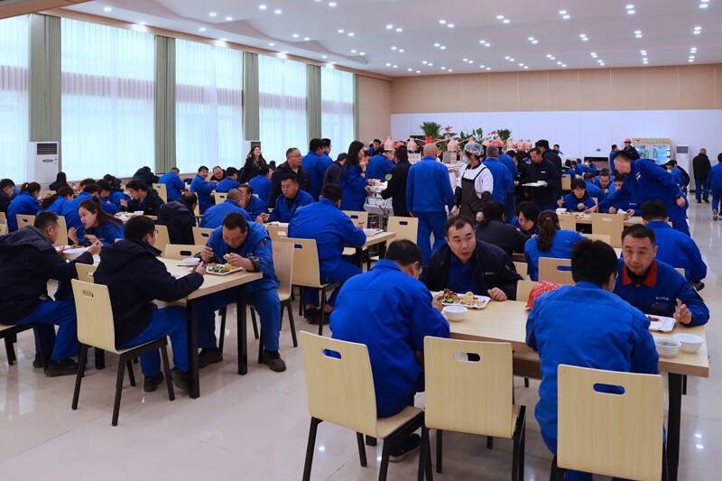 走进崭新的餐厅,明亮整洁的环境、排列有序的餐桌椅、功能齐全的设施让人眼前一亮。餐厅科学划分取餐区、就餐区、洗刷消毒区等功能区域,装修简约大方,通风采光俱佳,可同时容纳236名职工就餐。明厨亮灶的操作间,现代化厨具一应俱全,工作人员身着统一工装,严格遵循食品卫生标准规范作业,新鲜食材经精心烹制,变成一道道营养丰富、香气扑鼻的菜肴,为职工提供了多样化饮食选择。就餐职工端着餐盘自助挑选喜爱的饭菜,脸上洋溢着舒心的笑容。