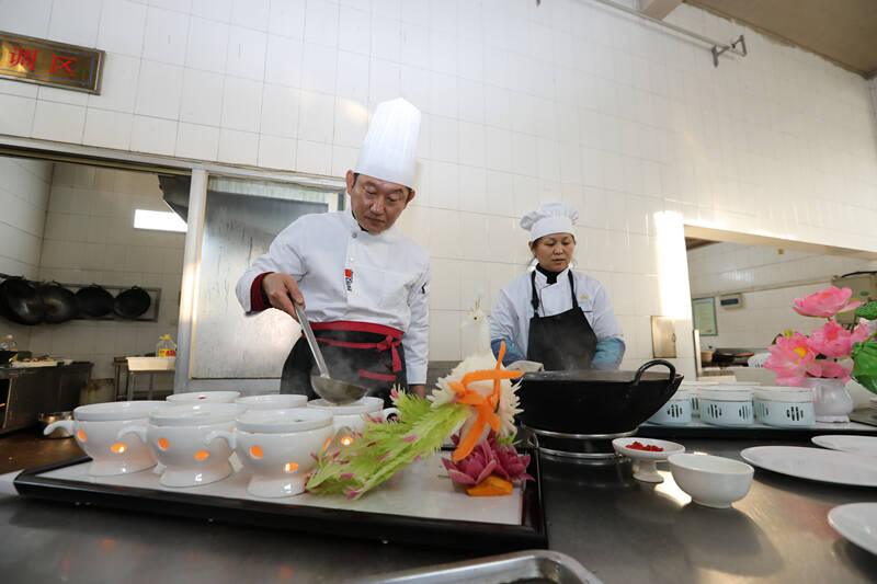 “这一尝就是岳师傅的手艺,他可是我们食堂的‘金字招牌’。不仅饭菜花样多,还特别懂我们的口味。豆腐箱、酥鱼锅、卤汁羊肉等淄博菜的口味更是一绝!”“金牌厨师”岳兖博的手艺深受职工们的好评。
