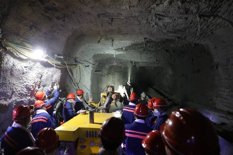 锚定智慧赋能、科技兴安,大力推进自动化锚杆钻车、智能喷浆装备、支护技术研究、井筒高腐蚀环境金属构件防腐技术等新装备、新技术应用,一批重点创新项目在现场落地见效。其中,混凝土远距离喷浆机器人有效管路输送距离突破600m,累计完成全断面喷浆1800m,多项技术指标实现突破;7305工作面安装应用微震、烈度、应力三套新式监测系统,有效提升矿井防冲监测预警能力。