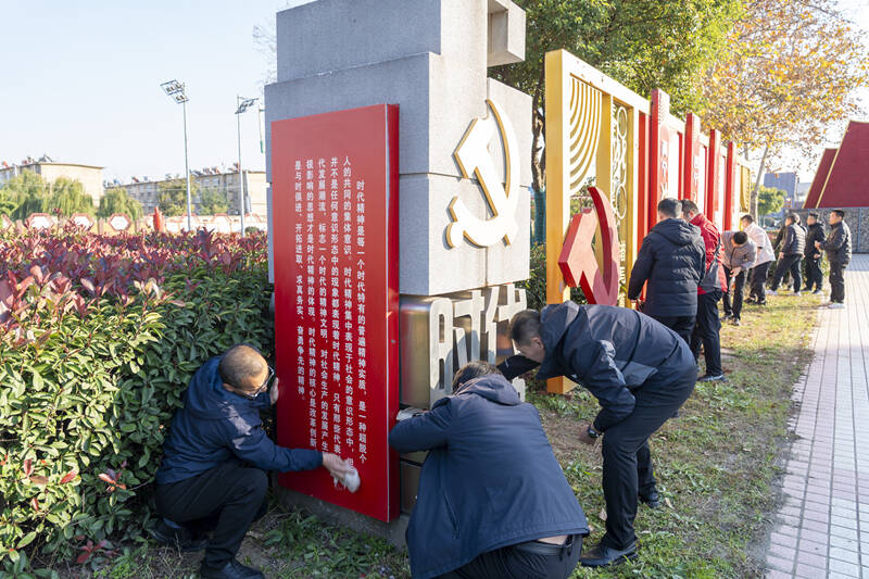 活动中,三个支部党员分工协作、主动奉献、干劲十足,自带抹布、水桶、笤帚、拖布等清洁工具,按照各自区域进行全方位的清理。在“红船”处,党员首先用拖布对红船表面拂尘进行清理,然后用干净的抹布进行两次再清理。在“新声”长廊,党员逐一对长廊内的牌板表面灰尘与污渍进行细致擦拭,确保牌板展示清晰醒目、外观整洁规范。在道路和苗圃中,党员手持笤帚,认真清扫路面和苗圃中的杂物与落叶,坚决不放过任何一处卫生死角。