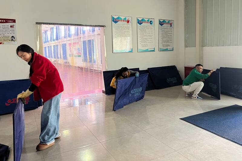 比赛前,工作人员对赛事用的挡板、裁判椅、乒乓球案、记分牌等比赛用品逐一擦拭干净,清点数量后摆放到指定位置,并仔细检查确保每件物品完好无损。待场馆布置妥当、彩排顺利结束,人员离场后,他们又对全馆卫生及地面进行彻底赛前清理,不放过任何细节,力求后勤保障做到细致入微。