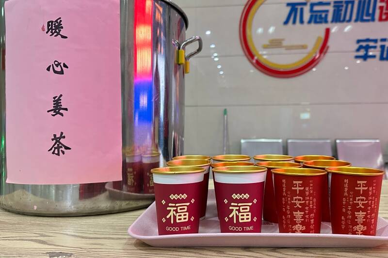 “生姜要选老姜,切片后慢慢熬,红糖要后放,这样煮出来的姜茶才够味又暖胃。”在南屯煤矿综合服务中心后勤服务职工食堂,志愿者孔凡慧一边搅拌着姜茶,一边分享她的“秘方”。