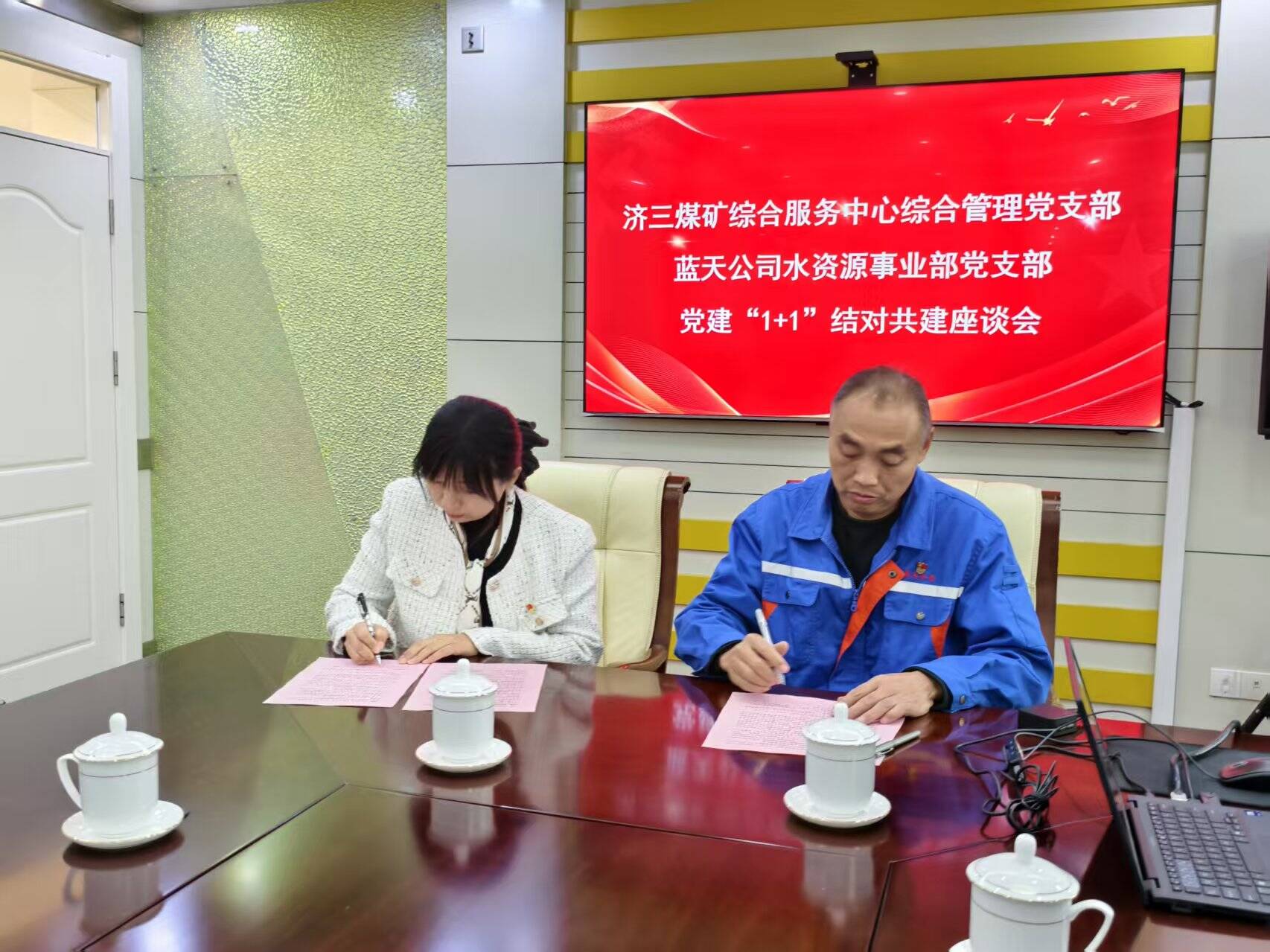 12月10日,蓝天公司水资源事业部党支部与济三煤矿综合管理党支部在济三煤矿举行结对共建签约仪式暨主题党建活动。双方党支部书记及党员代表共计14人参加活动,共同开启党建引领业务融合发展的新篇章。