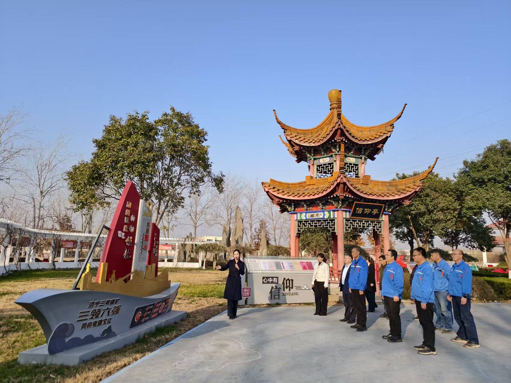 签约仪式后,党员代表赴济三煤矿融心党建公园开展观摩学习活动。在党建文化长廊,大家认真聆听红色故事、学习先进典型事迹,在一幅幅图文并茂的展示中感受党建工作的深厚底蕴;在宣誓广场,大家面向鲜红的党旗,举起右拳重温入党誓词,铿锵有力的誓言回荡在公园上空,进一步坚定不忘初心、牢记使命的理想信念,凝聚攻坚克难、携手奋进的精神力量。