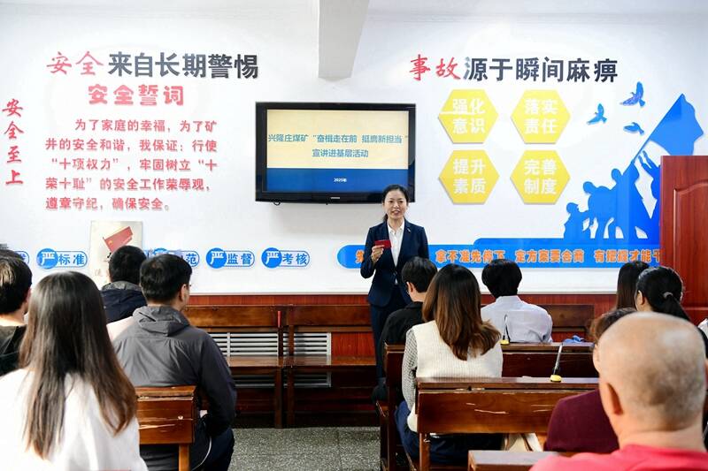 该矿发挥美好宣传队来自职工、服务职工的优势,做足“讲、看、评”功课,精心准备宣讲内容。宣讲中,美好宣传队宣讲员紧紧围绕“安全管控”“生产接续”“降本增效”“人才培养”“数智赋能”“和谐建设”“六个新担当”核心任务,找准找实宣讲的切入点、结合点。利用班前、班后会等时间,用一件件生动的事例和数据,讲述兴隆人践行“六个新担当”的生动故事,用小事例讲清新形势,用家常话解读新要求,帮助职工解决思想之惑、精神之缚,让学习宣传更接地气、更易感知。
