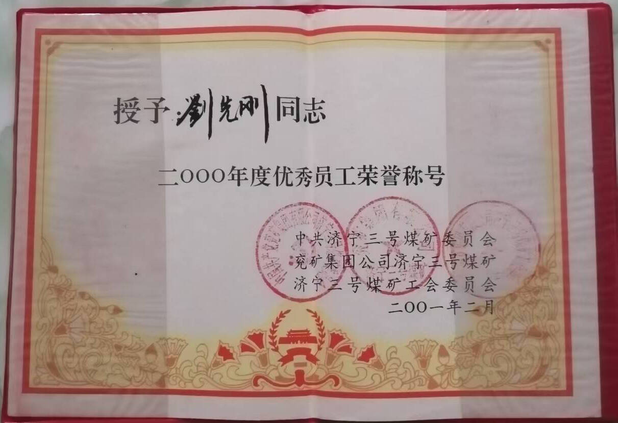 6301工作面作业那阵子,顶板压力大,涌水也多,巷道里的积水没过脚踝,凉得刺骨。机尾空间小,只能蜷缩着身子干活,头顶的碎石时不时掉下来。刘先刚主动揽下了支设、回撤工字钢棚的活儿,铰接十字顶梁、打单体支护,每一步都按规矩来。一个班下来,工作服被汗水和泥水浸得透透的,贴在身上冰凉,胳膊和腰酸痛得抬不起来,下班回家倒头就睡,连洗脸的劲儿都没有。可第二天一早,他还是准时出现在井口。2001年拿到“优秀员工”证书时,他只是挠挠头笑了:“都是该干的活儿。”