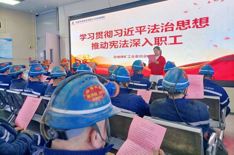 为进一步弘扬宪法精神,增强职工法治意识,“国家宪法月”期间,赵楼煤矿组织协管员走进矿井口候罐大厅、区队班组,开展“学习贯彻习近平法治思想,推动宪法深入职工”为主题的普法活动,为干部职工送上了一份丰富的“法治大礼包”。