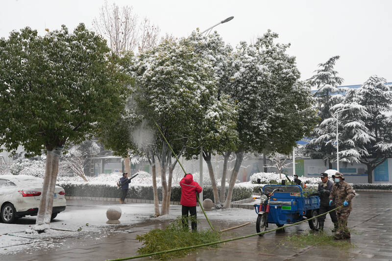 同时,该矿还对树木上的积雪进行清理,防止积雪压断枝干造成安全隐患。工作人员采取敲打树干、摇晃树枝等方式,及时清除覆雪,确保绿化树木安全。