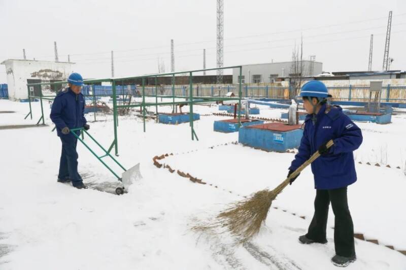 破晓时分,风雪未止。该矿综合服务中心党员干部职工已全员集结,手持铁锹、扫帚,奔赴各主干道。寒风刺骨,却吹不散众人高涨的热情;党徽熠熠,在皑皑白雪中映照出先锋本色。大家分工协作,配合默契,或铲或推或扫,铲冰声、扫雪声、鼓舞声此起彼伏,奏响了一曲铿锵有力的“清雪进行曲”。经过数小时持续奋战,清理工广区道路1000多米、各个岗点巡检路线300多米、撒融雪剂6袋、清理车间屋檐冰凌7处,一条条干净、畅通的“安全通道”“温暖走廊”被及时打通,有效保障了岗位职工安全通行。