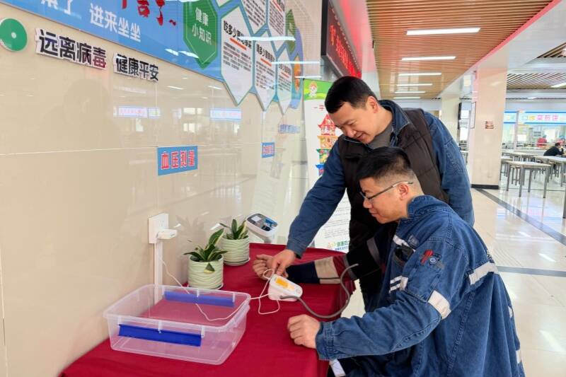 据工作人员介绍,大家伙儿每天都会来餐厅就餐,将驿站设在职工餐厅,就是为了方便职工餐前测量血压,反映身体最基础的状态,保证数据更准确。“路过就能看一眼健康贴士,量个体重、测个血压,太方便啦。”一位刚刚做完监测的职工说。