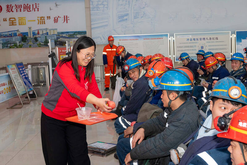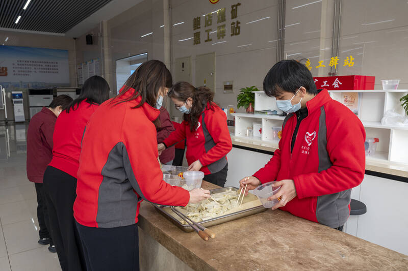 在井口候罐大厅,即将下井作业的职工接过热腾腾的水饺和慰问品,脸上洋溢着感动的笑容。一位职工表示:“太谢谢咱矿领导了,能收到这么贴心的慰问,心里特别暖和。”