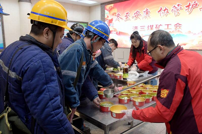 冬至将至,温情先行。女工协管员们早早忙碌起来,精心炖制羊汤、烹煮水饺,随后将香喷喷的羊汤和热气腾腾的水饺,送到车间岗位、副井口等候室的一线干部职工手中。“师傅们,吃口我们自己包的水饺下井,祝愿您幸福平安!”“师傅您辛苦了,刚上井,喝碗羊汤暖暖身子!”一声声真诚的问候伴着贴心的叮嘱,协管员们还不忘反复嘱咐大家牢记安全规程,时刻绷紧安全弦。一碗碗热乎的羊汤、一份份鲜香的水饺,驱散了冬日的寒意,现场欢乐祥和的节日氛围,鼓舞干部职工的工作干劲与热情。
