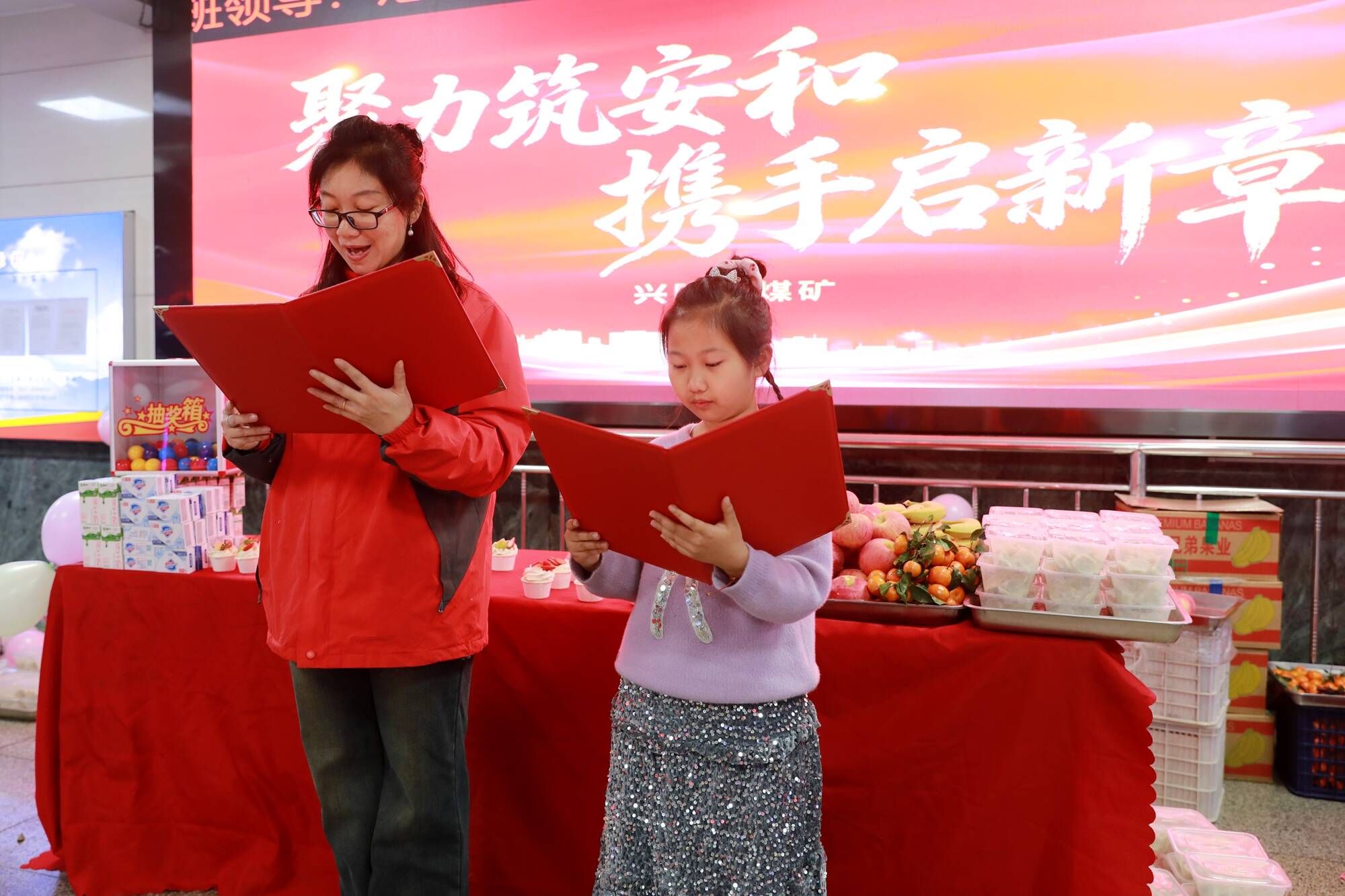 活动现场,一位女工协管员与女儿深情朗诵了自己创作的诗歌《井口的光与暖——致美好职工节》。稚嫩而真诚的童声,道出了对矿工叔叔们的敬意与牵挂,温暖的词句驱散了冬日的寒意,触动了现场每个人的心弦。