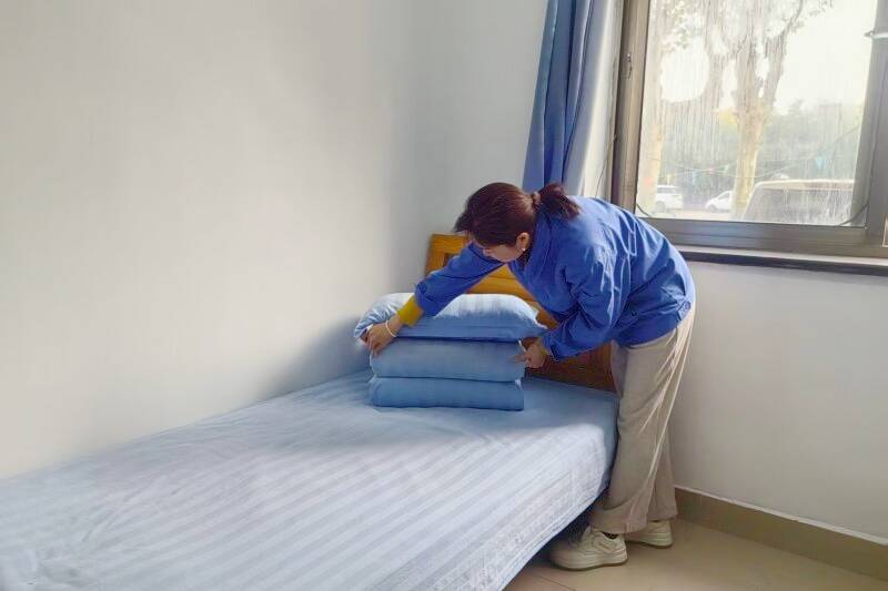卫生清扫服务的常态化开展让1100张床铺始终整洁如新。该矿建立严格的卫生清扫责任制,每栋宿舍楼配备3台全自动洗衣机、2台智能热水炉,实现“洗衣喝水不出楼”。保洁人员每日对公寓楼道、电梯间、公共卫生间等公共区域进行全方位清洁消杀,每周还会对职工房间内部进行上门保洁。同时,定期对公共洗衣机等配套区域进行卫生消杀,及时清理杂物、更换清洁用品。
