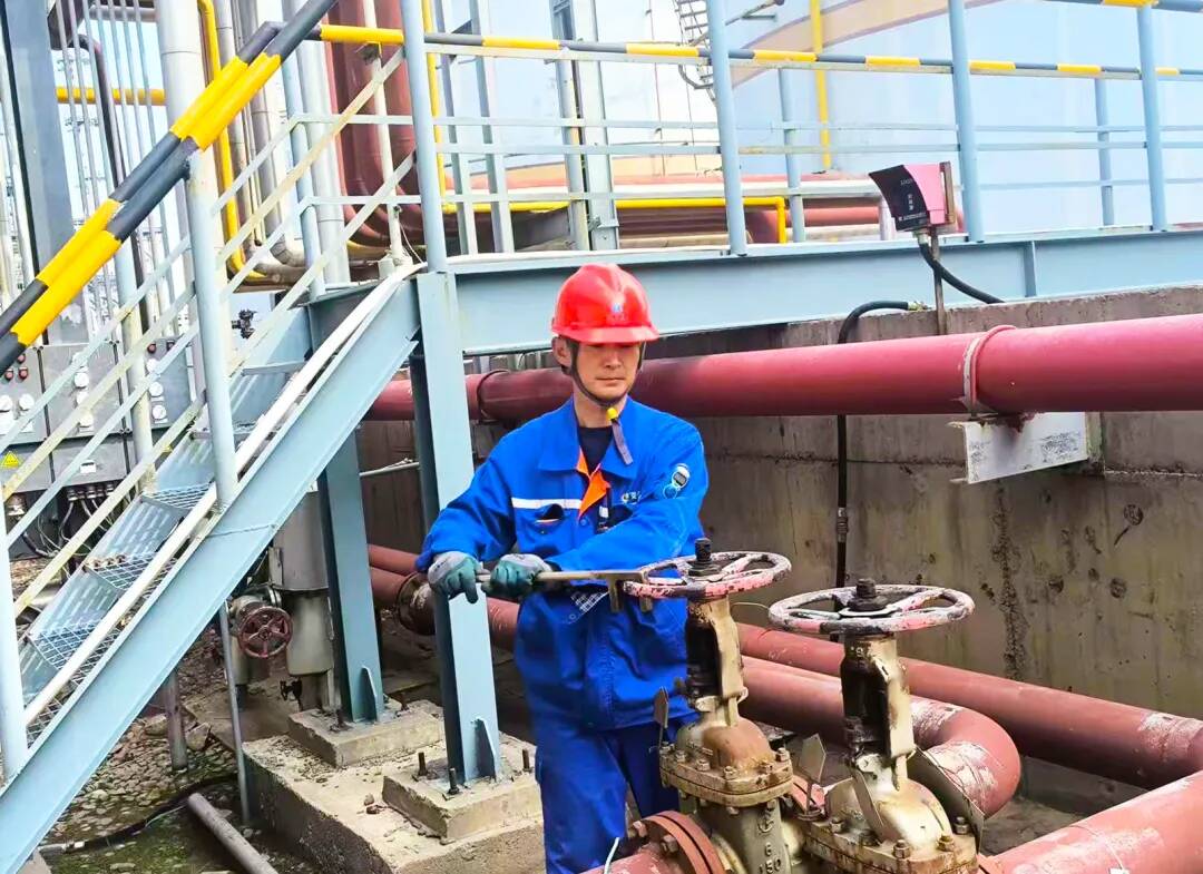 防冻是冬季生产的“首道关”。该车间从细节入手,扎实开展设备管线防冻保护。技术人员对现场所有导淋阀逐一排查并精准调整开度。甲班班长闫福元凭借多年经验总结出“精准调控法”——使用测温仪逐个记录阀门温度,结合管线介质特性反复测试,将导淋阀开度调整至既能有效防冻又不浪费蒸汽的最佳区间。“开大了浪费蒸汽,开小了易冻堵,必须找到这个平衡点。”闫班长说道。同时,他带领班组成员全面检查室内保温情况,对密封不严的门窗及时修补,逐点测试暖气效果,确保控制室与机组环境温度稳定,防止因低温导致连锁停机,为核心设备“稳定过冬”保驾护航。