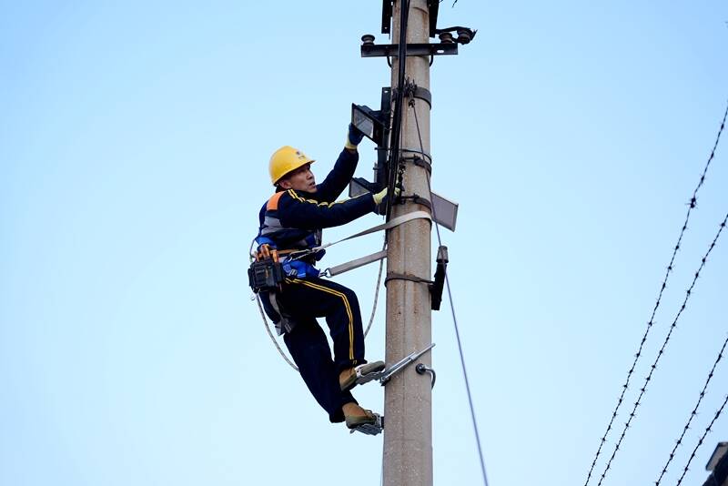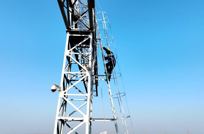 严寒酷暑,是外线电工的“必修课”,更是对坚守的极致考验。冬日里,零下五度的低温裹挟着寒风,李保光和同事们要攀爬至25米高的灯桥作业。这座跨度60多米的灯桥通体镂空,风吹过时晃动明显,光是站在地面仰望都让人腿软,可他们每周都要顶着寒风巡检近两个小时,逐一排查灯具连接、线路绝缘等问题,哪怕手指冻得僵硬,也要确保每一个部件都安全可靠。到了夏季,烈日炙烤着大地,地表温度常常突破40度,他们日均行走六七公里,工装被汗水浸透又被晒干,反复留下盐渍的印记。即便如此,每逢暴雨、大风等恶劣天气,他们还要加密巡检频次,顶风冒雨穿梭在各个站点,用身躯抵御风雨,守护电力安全。