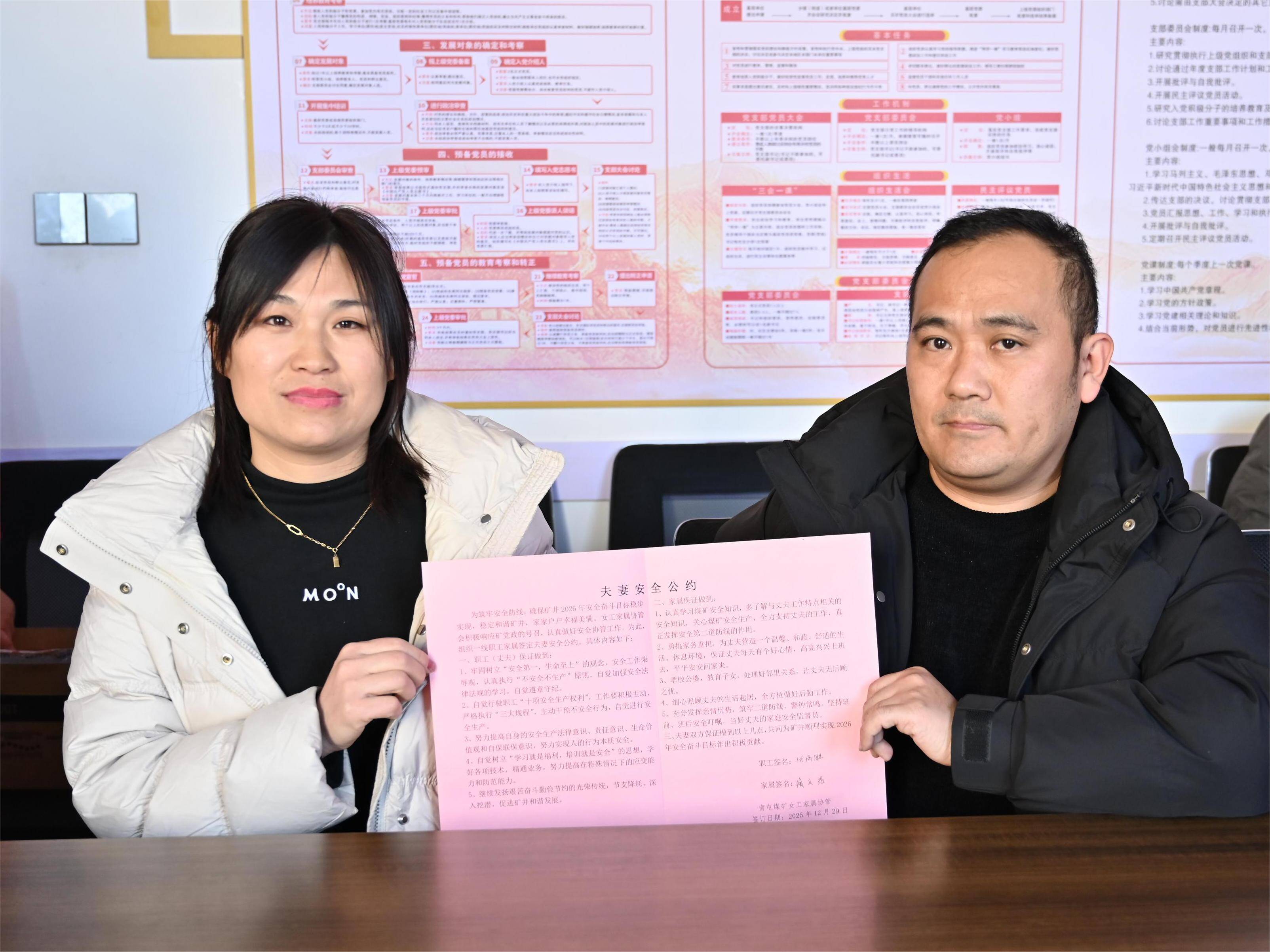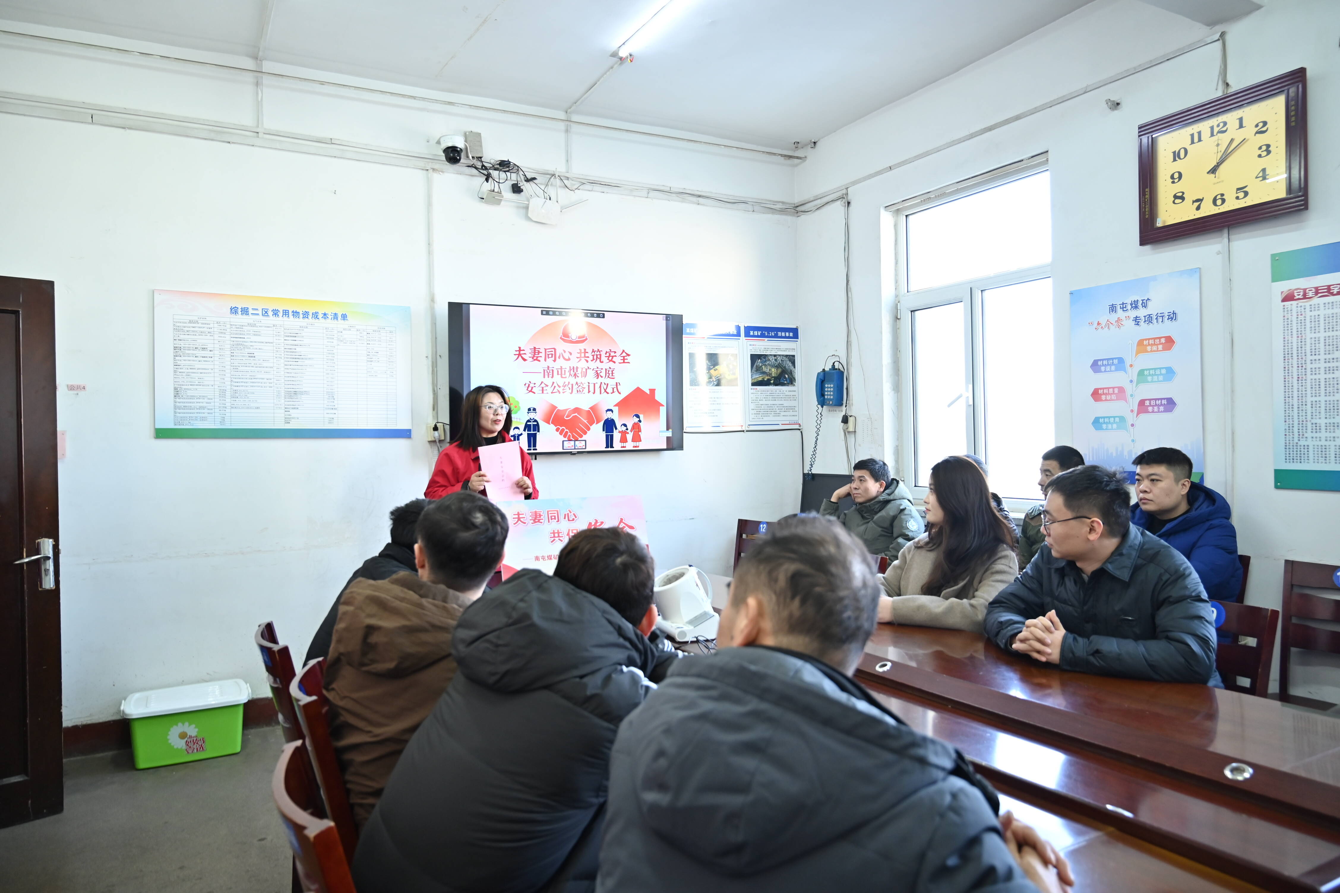 在南屯煤矿综掘二区会议室,职工华秀钵和妻子在《家庭安全公约》上郑重签下彼此的名字。笔尖落下,不仅是一份共同的承诺,更将家庭的脉脉温情与矿井的安全生产牢牢系在了一起。