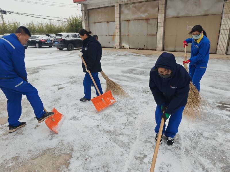 综合服务中心提前关注天气变化,降雪后,第一时间组织后勤人员对公司主干道、办公楼、餐厅、停车场等区域开展清扫,确保职工高频活动场所通行无阻。