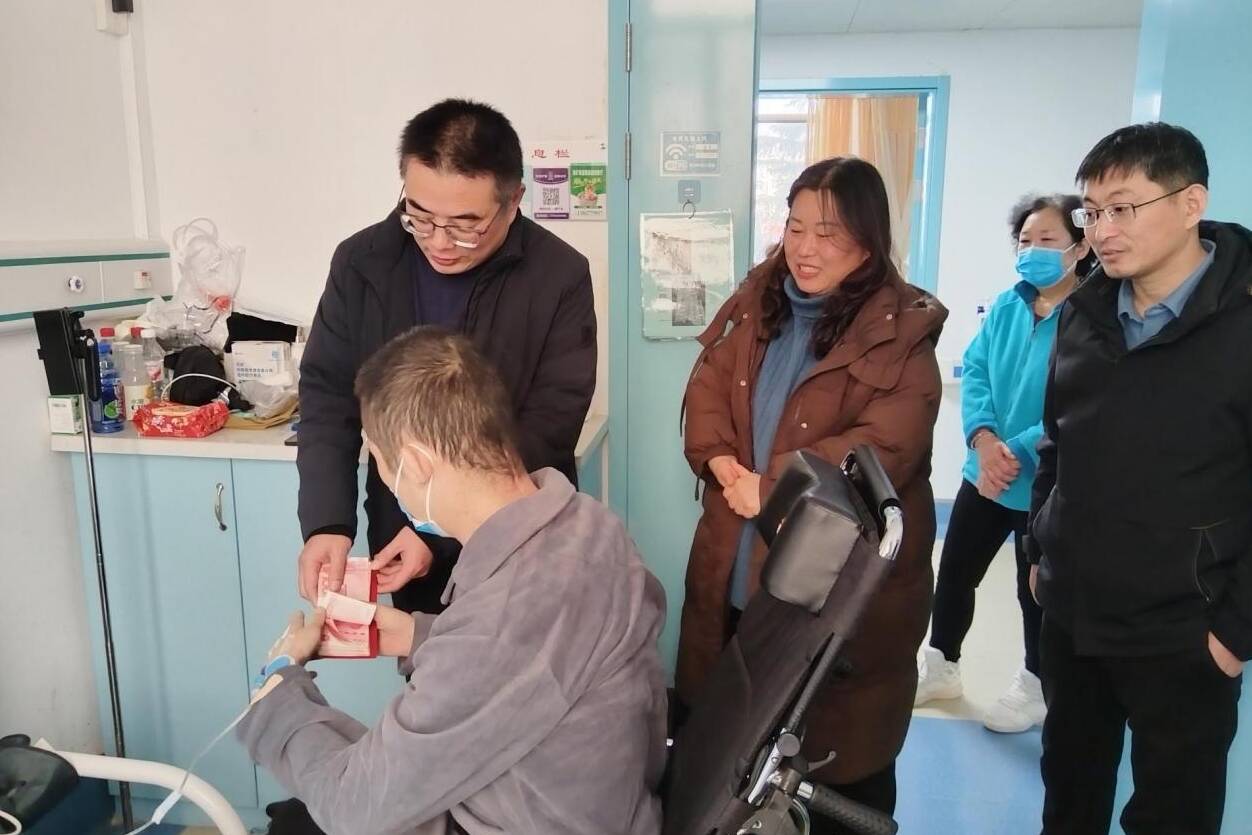 在病房里,工友们细致询问了治疗康复进展、生活情况,耐心倾听家属诉求,反复鼓励他保持积极乐观的心态,勇敢面对伤病挑战,安心接受治疗,医学在进步,一定能逐步渡过难关。