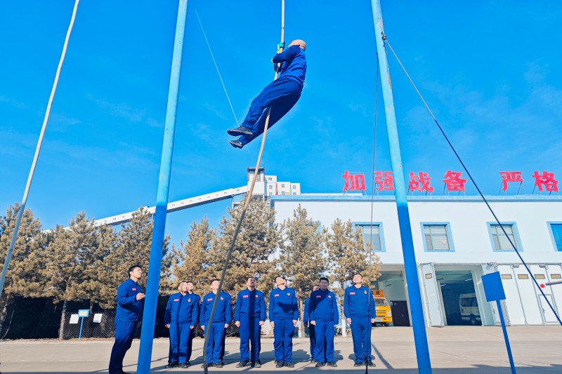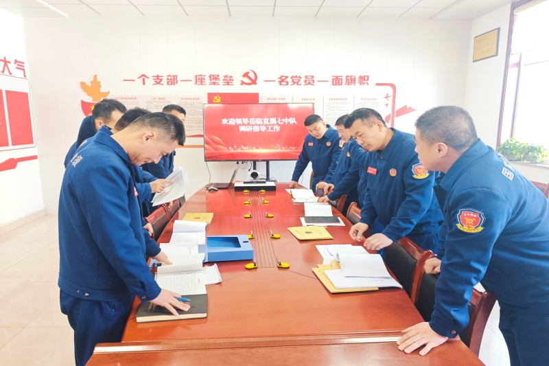 在技能展示与实地观摩环节,直属七中队指战员现场演示了爬绳、快速安装汽车防滑链等针对性应急科目,动作精准熟练、配合默契高效,展现了过硬的业务素养。随后,大家到值班室、装备库、充氧泵房、队员宿舍等场所进行实地参观,认真学习训练计划、档案记录及相关管理台账,并就具体细节进行了现场询问和务实讨论,学习交流气氛热烈。