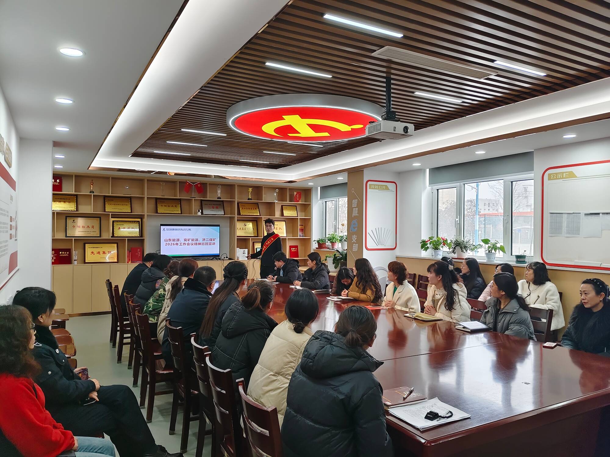 此外,为全方位推动2026年工作会议精神全面落地、走深走实,济二煤矿在宣讲的基础上,构建起“线上+线下”全链条立体宣传矩阵。线上依托矿官方网站、微信公众号开设“贯彻落实会议精神”专题专栏,通过重点解读、一图读懂、经验推广等形式全方位解读会议精神,打造职工身边的“掌心课堂”,方便职工随时随地学精神、明方向;线下充分利用矿广播、宣传栏、电子大屏、横幅等宣传载体,广泛宣传矿井2026年的发展思路、目标任务和工作举措,同时各基层单位以班前班后会、专题学习会为契机,持续开展会议精神学习研讨,推动精神宣讲向岗位延伸、向个人覆盖。