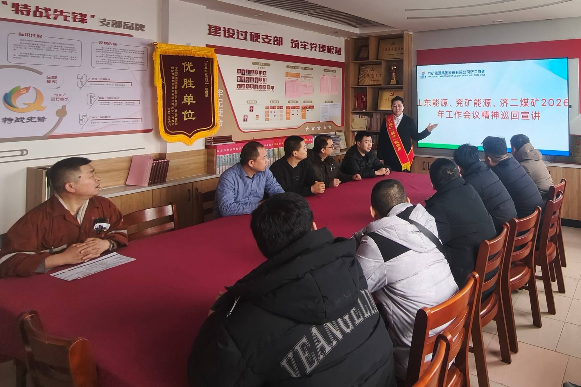 “2026年矿井的发展蓝图已经绘就,我们要以开展‘齐心协力谋发展 攻坚克难勇担当’形势任务教育为抓手,围绕年度总体工作思路,共同创造济二煤矿更加美好的明天!”宣讲员的话语铿锵有力,“对咱们一线职工来说,把每一次操作做规范、把每一处隐患排查掉、把每一项工作落实好,就是对矿井发展最好的贡献。”