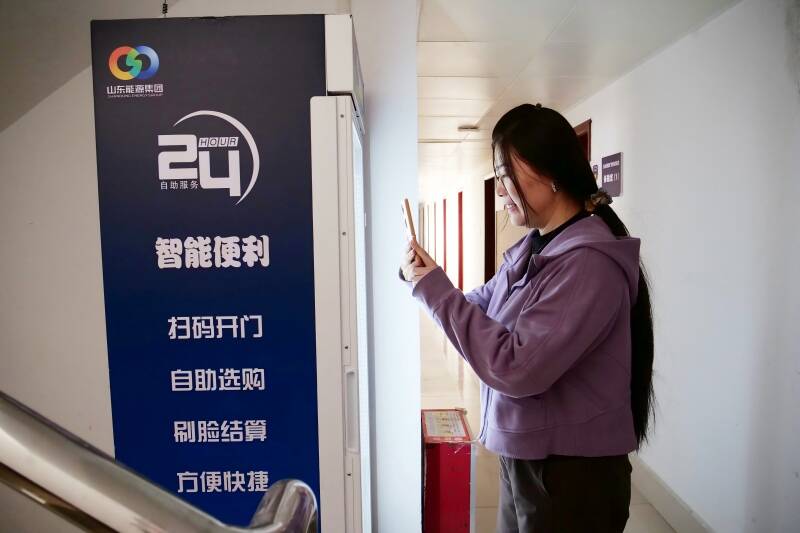 “以后下夜班再也不用跑去门口买东西吃了,扫码就能买到小零食可真方便!”刚下夜班的综掘一区技术员唐道增,在宿舍楼新建的24小时无人售货机前扫码购买了方便面和水满意地说道。