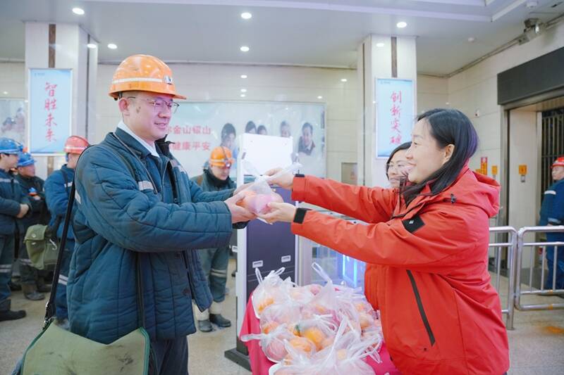 “师傅,春节快到了,这份心意您收好,下井作业一定要牢记安全规程,过节不忘安全,平平安安上班、团团圆圆回家!”